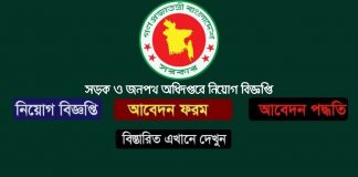 সড়ক ও জনপথ অধিদপ্তরে নিয়োগ বিজ্ঞপ্তি ২০১৯
