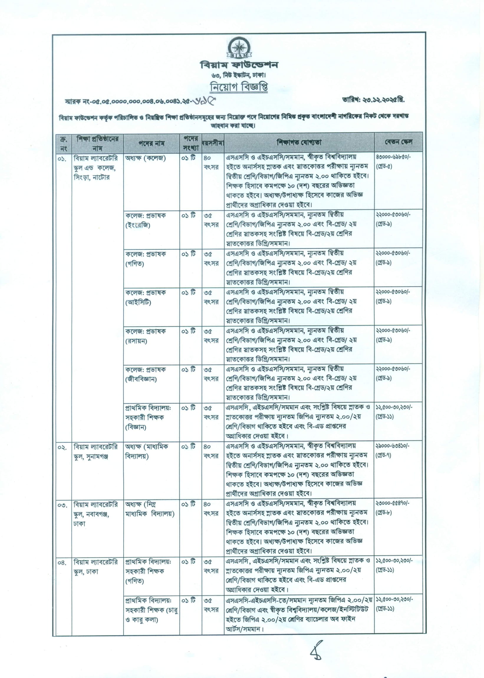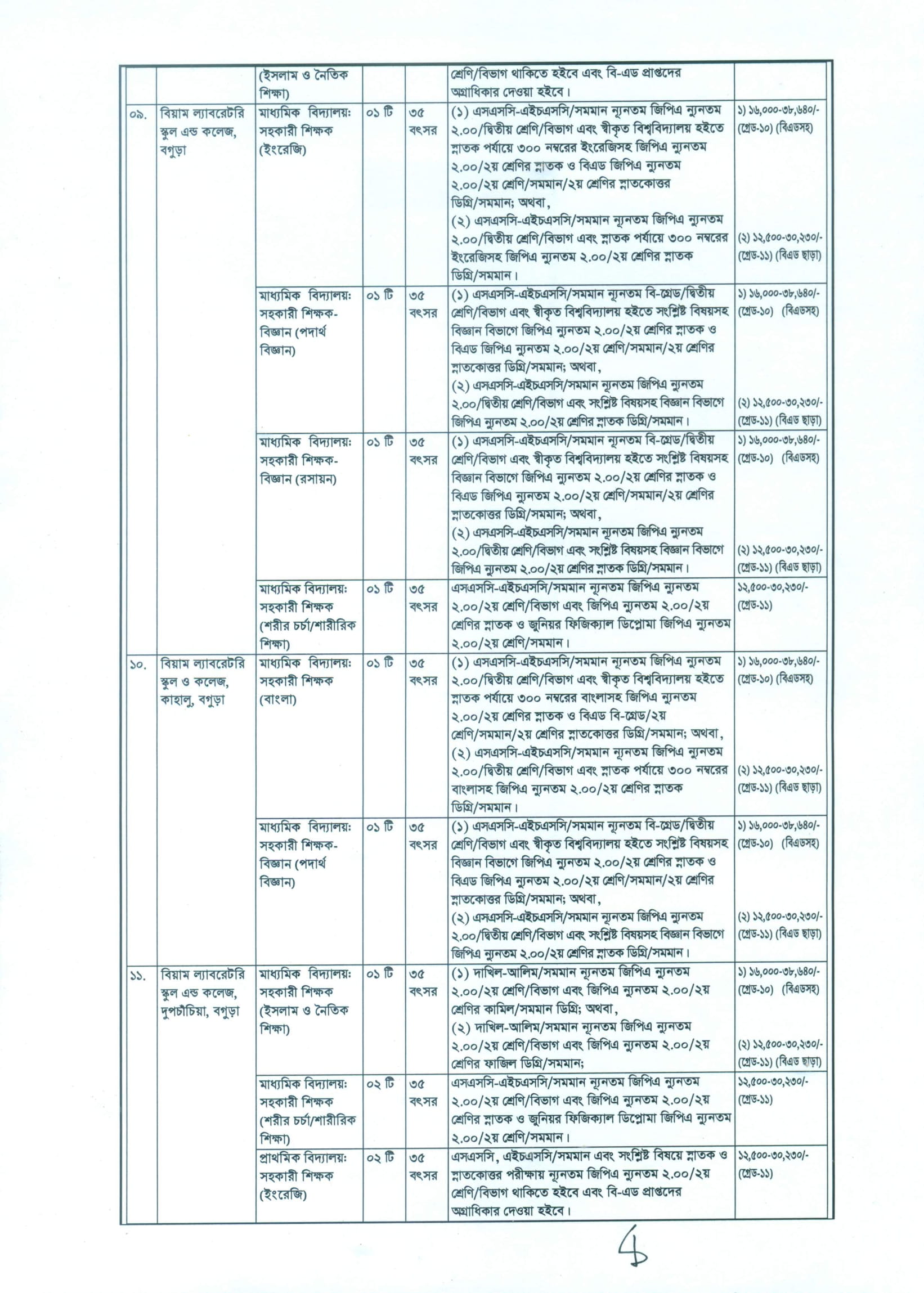 পদ সংখ্যা: ০৪ টি।