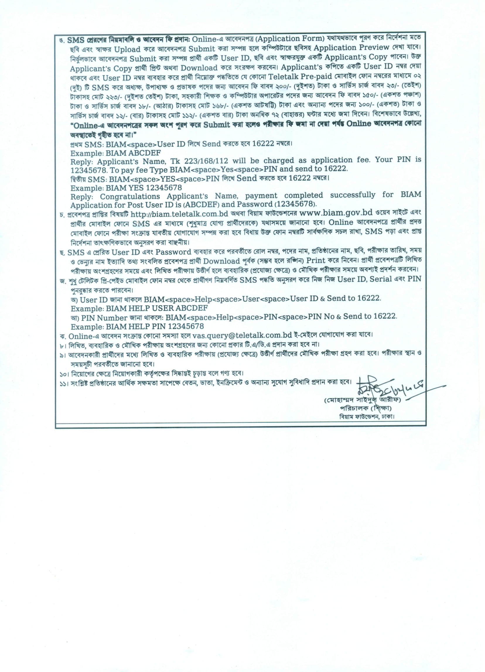 আবেদন প্রক্রিয়া: আবেদন করতে হবে অনলাইনে http://biam.teletalk.com.bd ওয়েবসাইটের মাধমে অনলাইনে আবেদনপত্র পাঠাতে হবে।