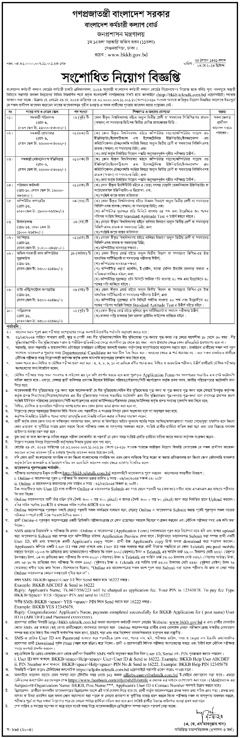 আবেদন প্রক্রিয়া: আগ্রহী প্রার্থীরা অনলাইনে http://bkkb.teletalk.com.bd ওয়েবসাইটের মাধ্যমে আবেন করতে পারবেন।